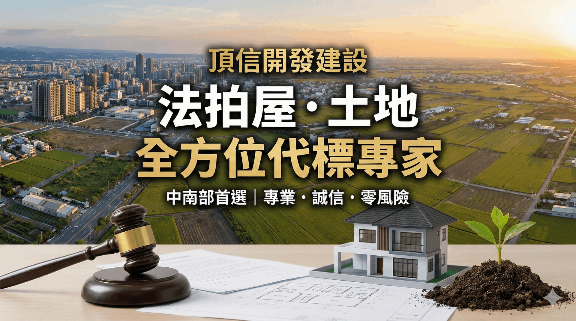 想投資法拍屋或土地卻擔心風險?頂信開發建設提供全方位法拍代標服務。從產權調查、精準估價、銀行代墊到交屋點交,我們專精處理持分土地、不點交物件。服務涵蓋台中、彰化、南投、苗栗及雲嘉南地區。未得標免服務費。